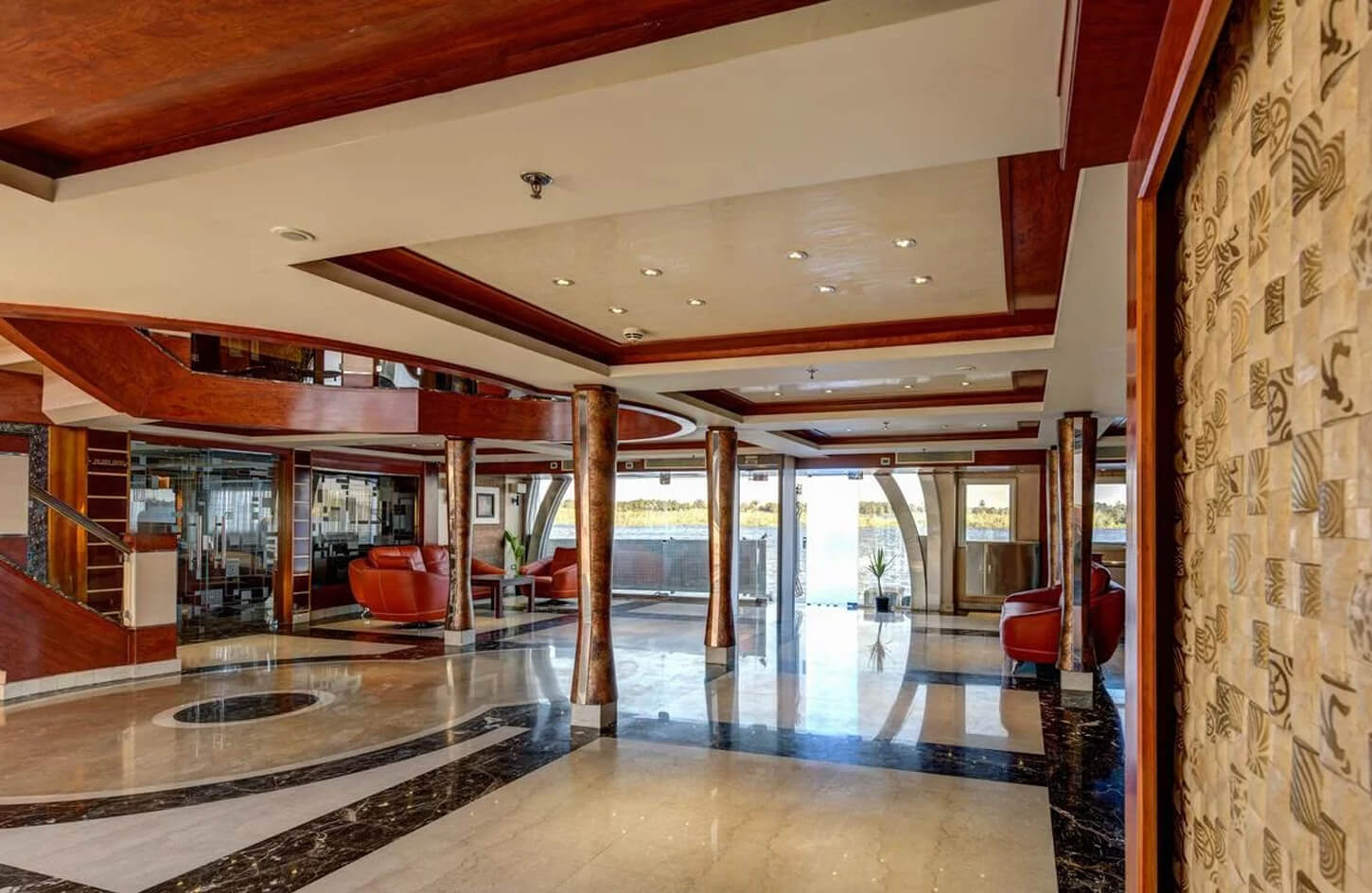 Durante tu travesía, te sentirás como un viajero del tiempo, flotando a través de paisajes deslumbrantes que cuentan historias de un pasado glorioso, todo mientras disfrutas de un servicio impecable y comodidades de primera clase. El Esmeralda Nile Cruise no solo es un viaje por el río, sino una inmersión profunda en la cultura y la majestuosidad de Egipto, donde cada rincón del barco está diseñado para ofrecerte una experiencia única y de alto nivel. Desde cenas exquisitas hasta excursiones guiadas que te conectan con la historia antigua, cada momento a bordo es un deleite sensorial.