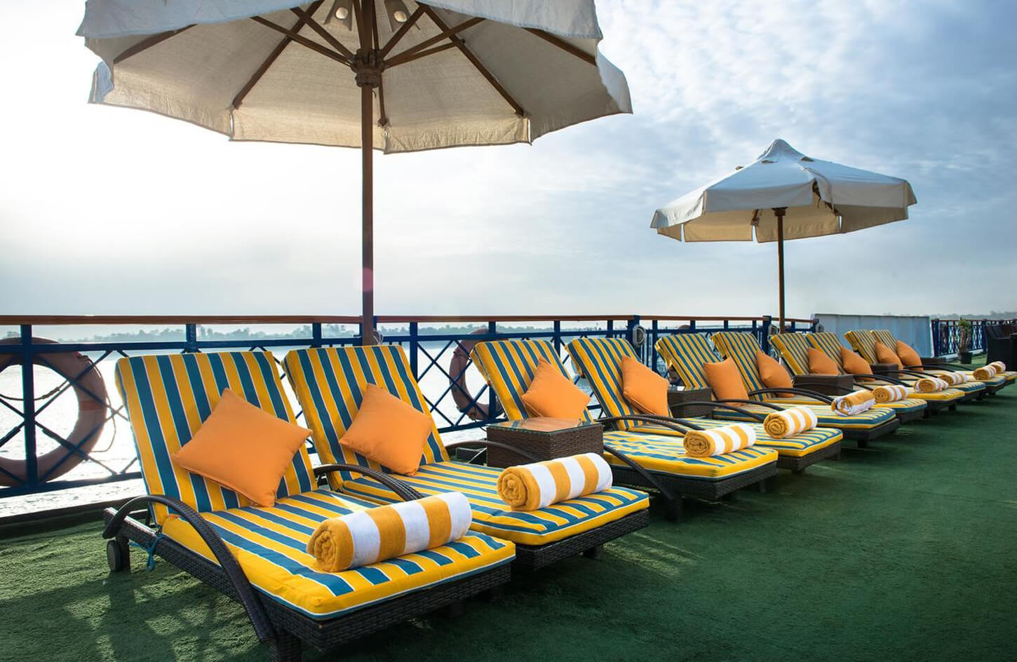 Disfrute de la cubierta de sol, observando el paisaje único del gran río Nilo. En sus orillas se ha creado y florecido la antigua civilización egipcia.