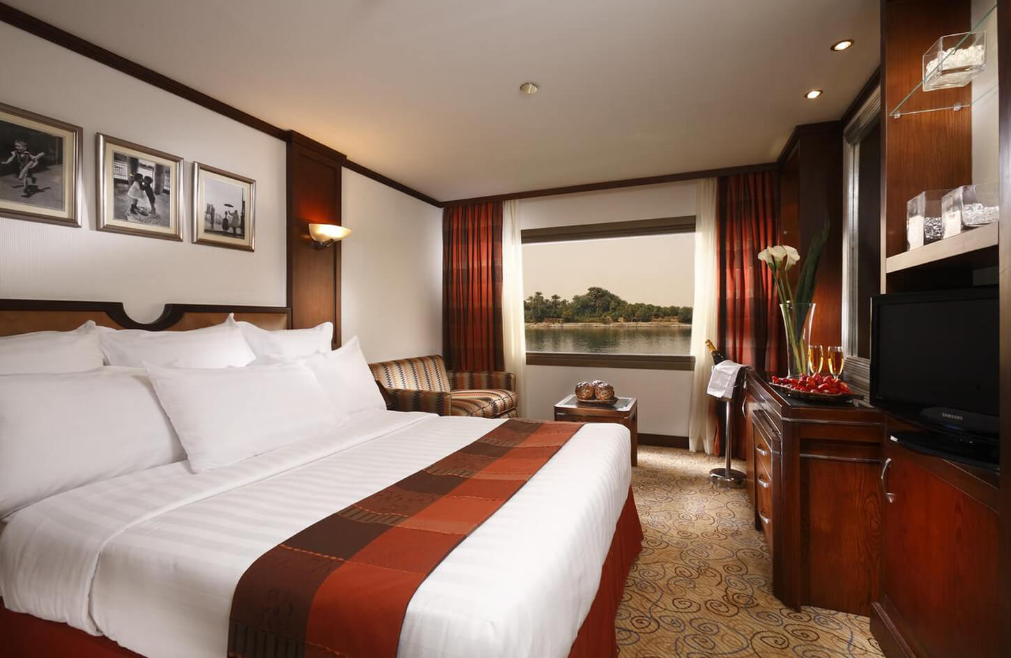 Ofrece multitud de instalaciones, amplios espacios y camarotes que pueden interconectarse si es necesario. Los camarotes orientados al exterior le permitirán disfrutar del paisaje del Nilo y sus tierras circundantes. Cuenta con piscina al aire libre, discoteca a bordo, programas de entretenimiento, spa y gimnasio.